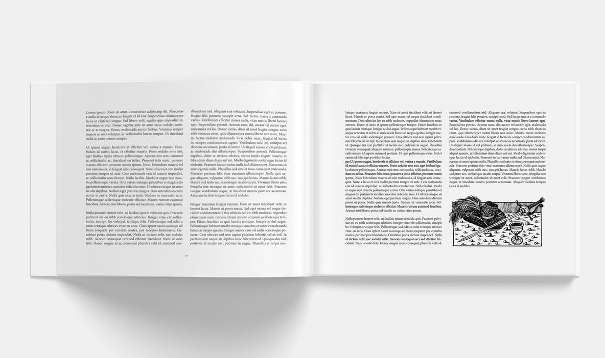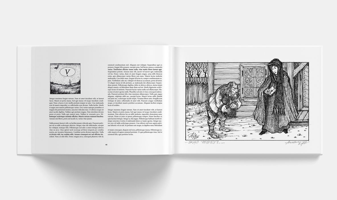 Przykładowe strony z proponowanym układem tekstu, ilustracji i przerywników.
